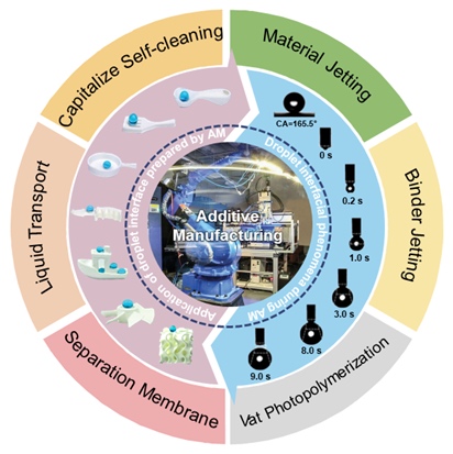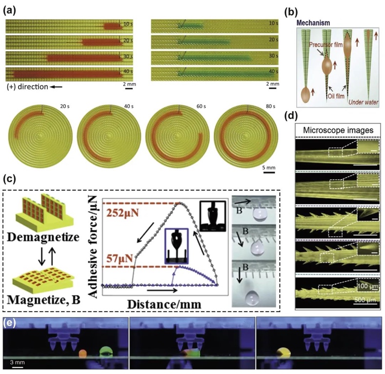 增材制造可定制复杂微结构,实现液滴定向输运(图3),例如: