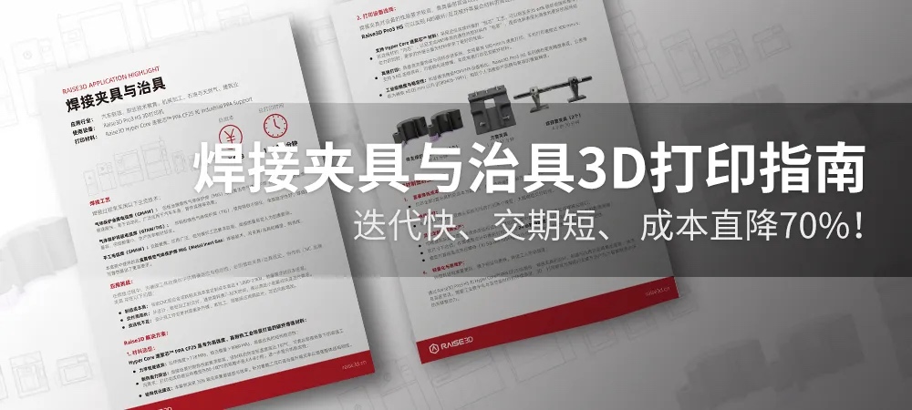 《焊接夹具与治具3D打印指南》详细解析了 Raise3D 如何通过高性能增材制造技术,为焊接行业提供一套高效、经济、灵活的新型解决方案。