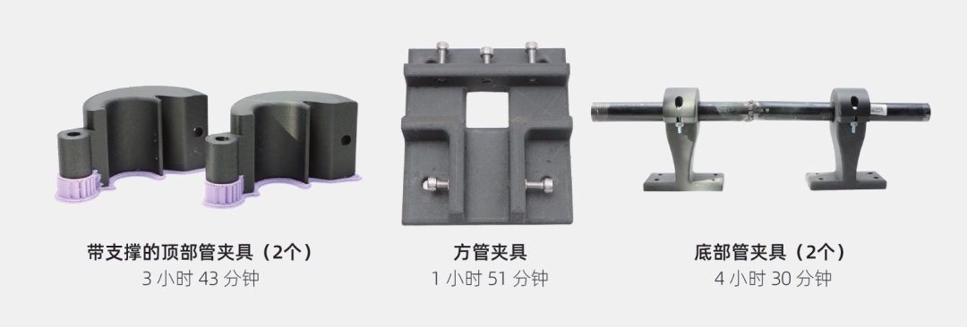 •打印效率:单套夹具最快1.5小时完成打印,批量生产支持双喷头同步作业,24小时内即可交付使用。