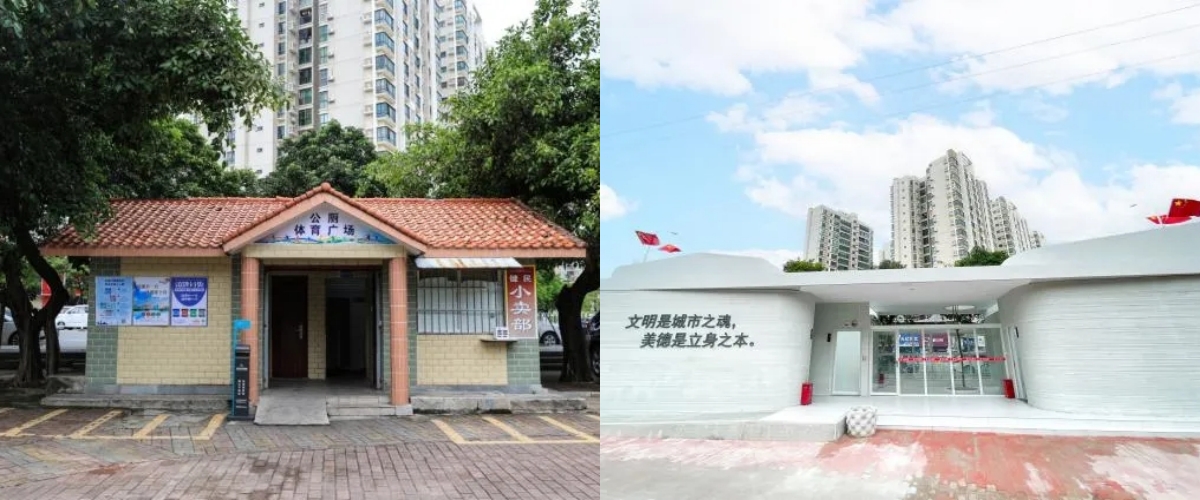 项目位于红旗全民健身广场原址,通过对原有老旧公厕的拆除重建,打造出总占地面积121.34平方米、建筑面积136平方米的现代化驿站。