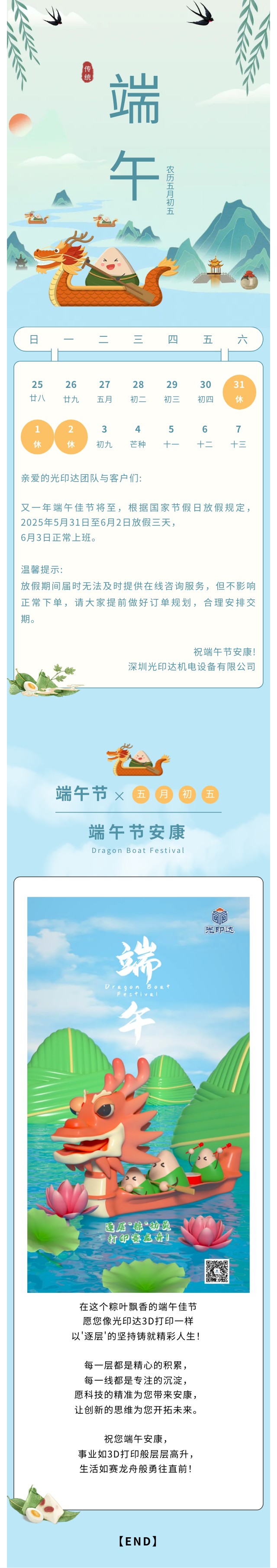 首页 / 新闻资讯/新闻资讯/端午安康 | 光印达3D打印放假通知请查收