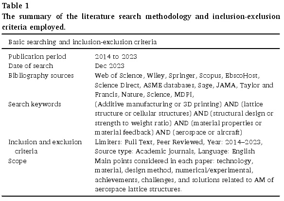 因此,本系统文献综述详细概述了专注于增材制造的航空航天轻质晶格结构的研究。由于轻质结构设计在航空航天应用中是一个很有前景的领域,特别是晶格的应用因其高的强度重量比和良好的效果而不断增加。了解与航空航天应用的轻质晶格结构设计特别相关的各种晶格参数、设计方法、制造技术和材料非常重要,因此,本文的重点在于晶格结构在航空航天应用中的强度重量比能力。因此,本文的研究和趋势总结中排除了涉及晶格能量吸收的文献。对能量吸收及其相关参数的详细文献感兴趣的读者,可参考其他相关文献。
