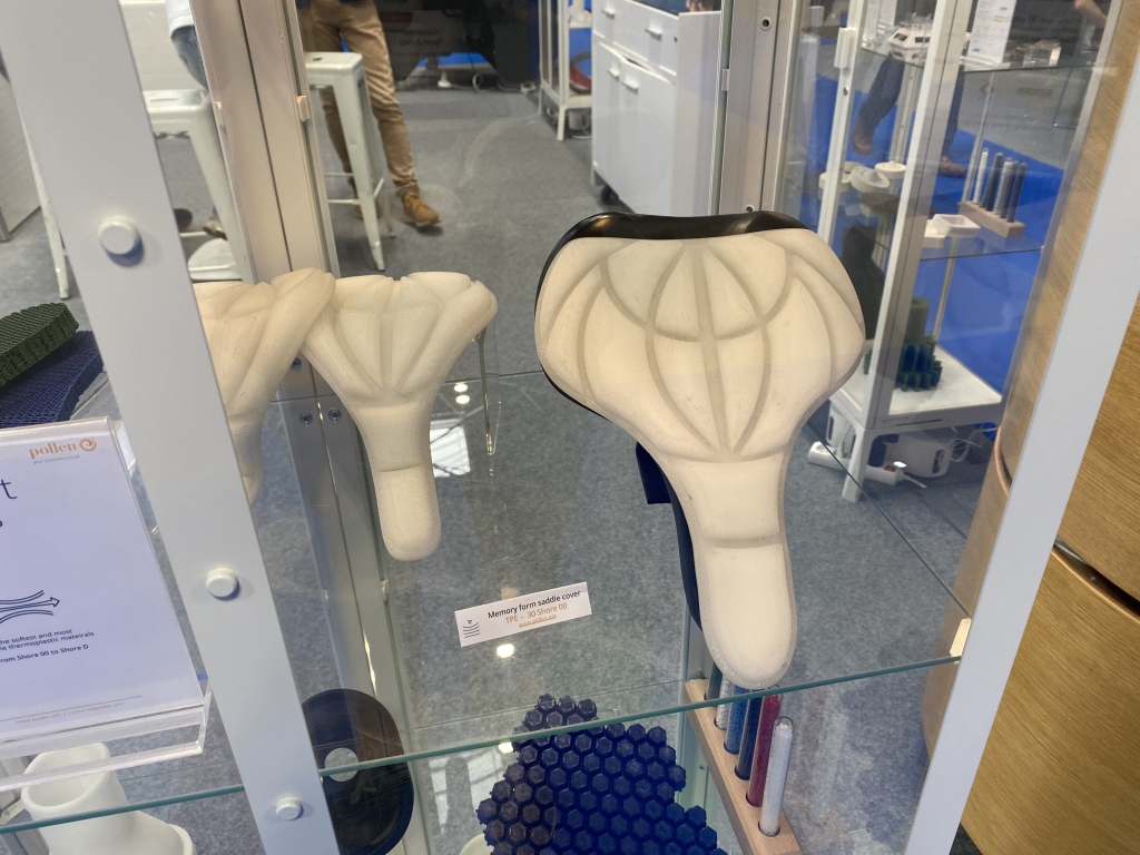 Littmann指出,石油天然气、消费品、医疗和体育行业中有许多高混合、小批量的应用场景。Pollen AM的TPU材料具有极佳的柔软性,非常适合生产水管、密封件、鞋垫以及自行车鞍座等产品。在Pollen AM的展位上展出的自行车鞍座,就是使用了弹性极佳的TPE-30 Shore 00材料3D打印而成。Littmann强调:“这是使用线材无法实现的。”