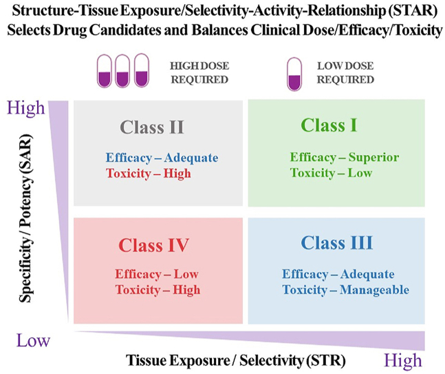 结构-组织暴露/选择性-活性关系 (STAR) 选择候选药物并平衡临床剂量/功效/毒性。