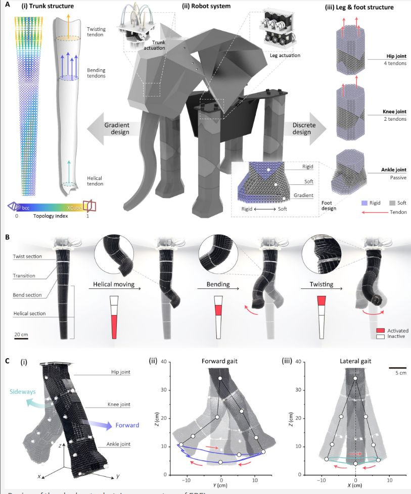 在自然界中,动物依靠具有不同硬度和强度的肌肉、肌腱和骨骼协同运动。例如,大象的象鼻柔软灵活,而腿部则坚固有力。研究团队希望在机器人中复制这种运动范围和力量,但不增加结构复杂性和重量。