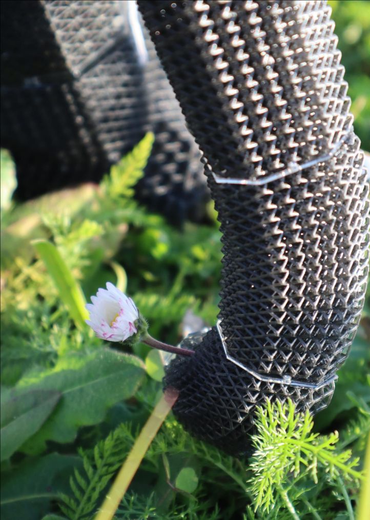 研究团队利用TR技术打造了平滑灵活的象鼻,能够弯曲、扭转和卷曲。象鼻由沿长度缓慢变化形状的晶格构成,分为扭转、弯曲和螺旋三个部分,仅使用四个电机和几根肌腱协同工作,可以抓取花朵等物体而不会压碎它们。