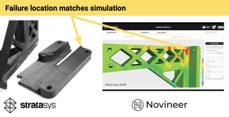 Novineer的 NoviPath仿真引擎 直击这一痛点。它直接利用GrabCAD Print Pro生成的原始刀具路径数据进行仿真,实现了真正意义上的工艺感知分析。工程师可以在虚拟环境中,基于与实际打印完全相同的路径,提前评估零件的刚度、强度及潜在失效行为,并进行快速设计迭代。