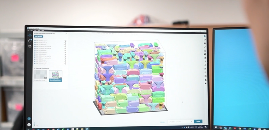 GrabCAD Print Pro 将自动排包与三维阵列放在同一前处理逻辑中,目标很明确:缩短准备时间,提高空间利用率,让批量件组织更有秩序。