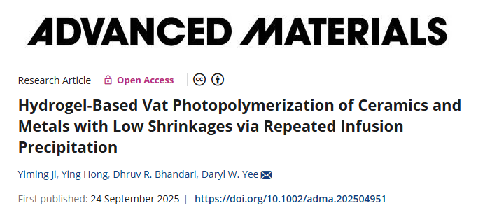 Hydrogel-Based Vat Photopolymerization of Ceramics and Metals with Low Shrinkages via Repeated Infusion Precipitation