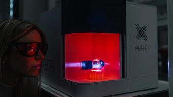 PERFI Technologies开发了一种获得专利的体积增材制造技术,可制造无层、无支撑的零件。这项工艺的工作原理是将动态光图案投射到装有光敏树脂的旋转槽中。这种方法能够在短短几秒内一次性成型整个物体。该工艺的关键在于公司自主研发的算法,算法能够有效地将数字3D模型分解成各种图像,然后将这些图像投射到装有少量液体的容器中。此工艺使用的材料是一种专有树脂,已预先验证具有生物相容性。