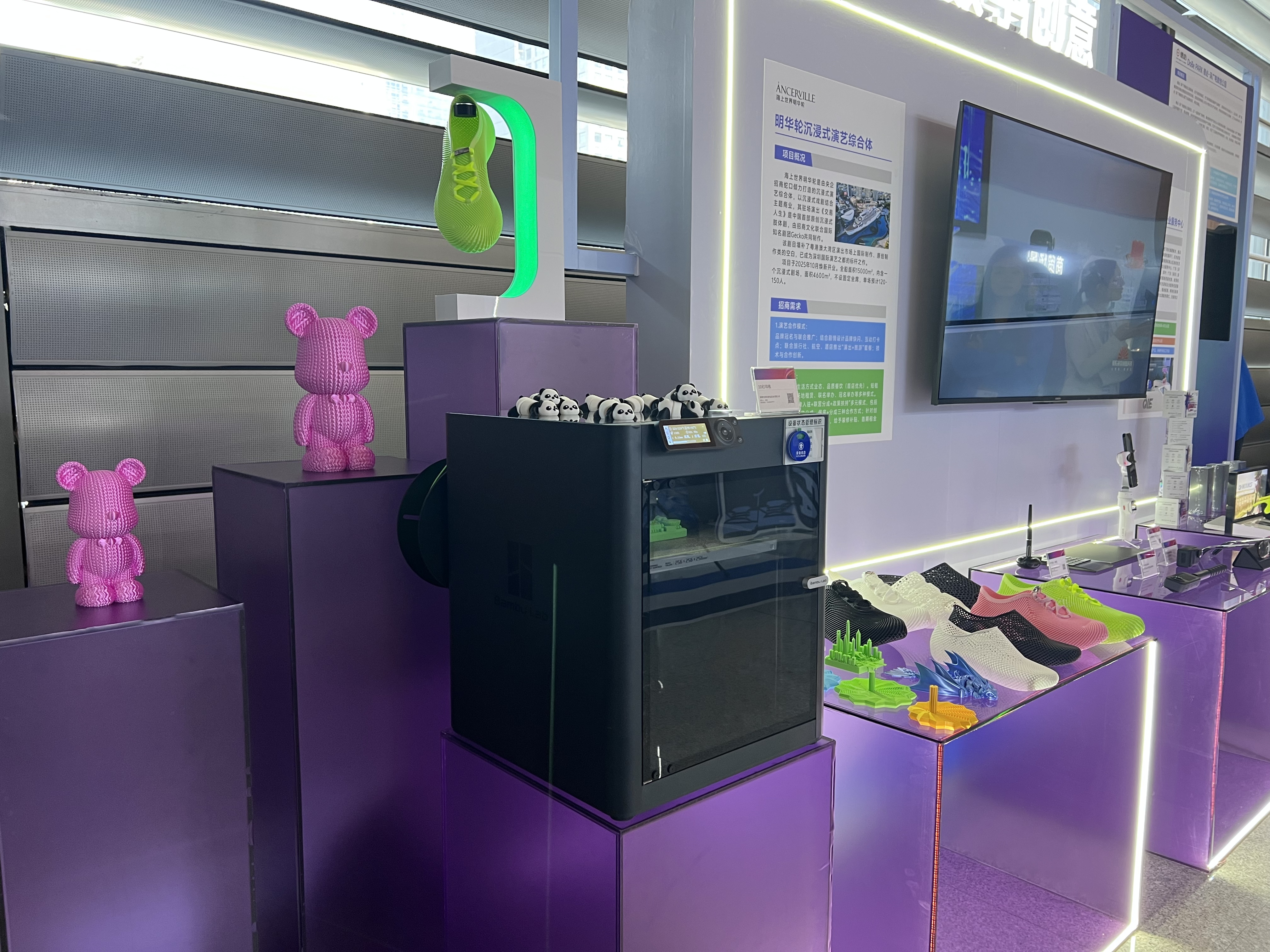 展示如何通过3D打印技术实现鞋类产品的“一体成型无拼接”的结构特点,在材料韧性与耐磨性能上也形成了自身特色。