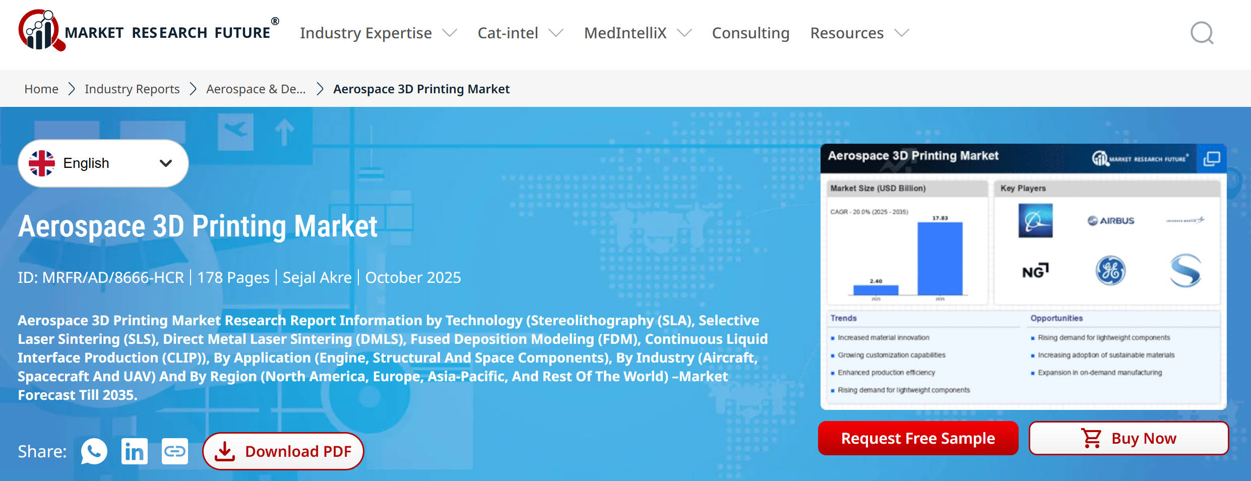最新行业分析揭示,航空航天3D打印市场正迎来结构性变革。根据Market Research Future(MRFR)的报告,该市场规模预计将从2025年的28.8亿美元,以20.0%的年均复合增长率迅猛扩张,至2035年达到178.3亿美元。这标志着3D打印技术正从辅助性的原型工具,升级为航空制造体系中不可或缺的核心生产力。