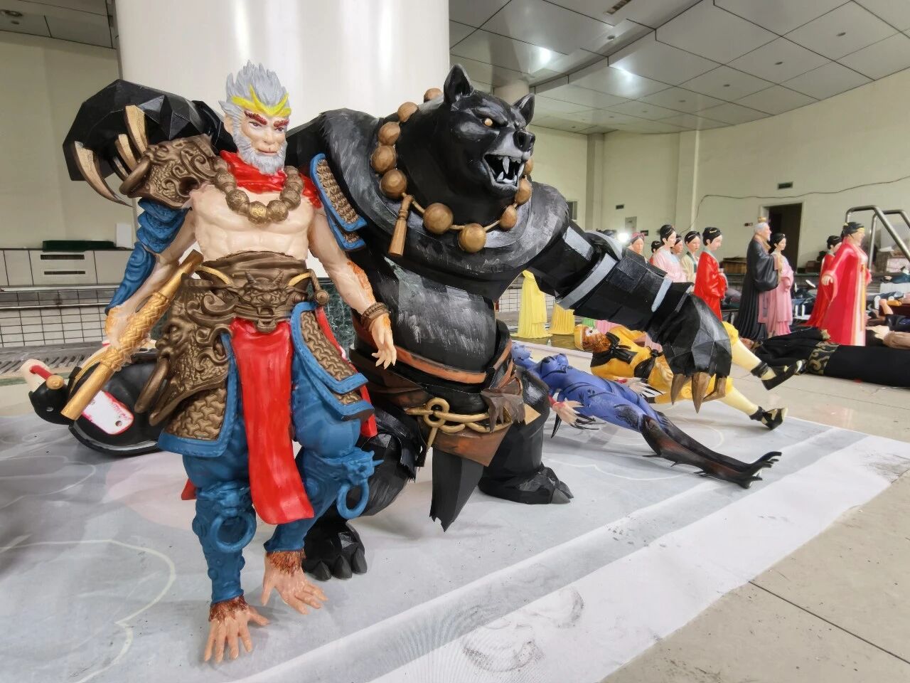“天命人、黑熊精等角色均采用3D打印一体成型,五官神态栩栩如生。”灯展总设计师赵宝明表示,配合内部精密的机械传动结构,所有人物均可实现挥手、转身、腾云等连贯动作,让国漫形象从屏幕走进现实,为传统灯会注入年轻活力。